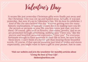 A beautiful Valentines Day message given by a loving and caring couple. Valentines Day is special to me because it’s our anniversary date. Marty and I celebrate our special day every year with as much love and affection we can give each other. Care for each other, love each other and you will be blessed forever ❤️